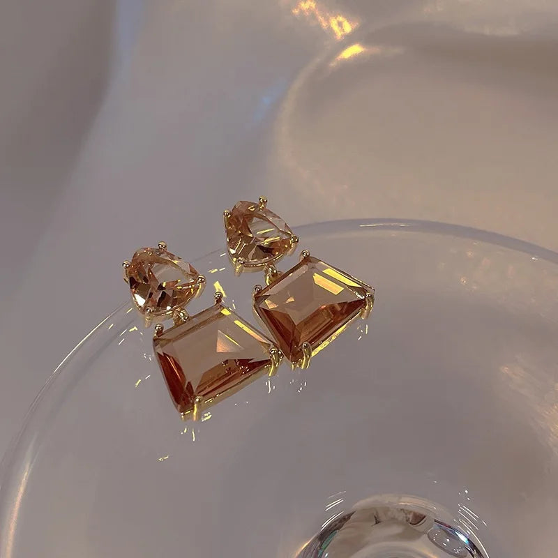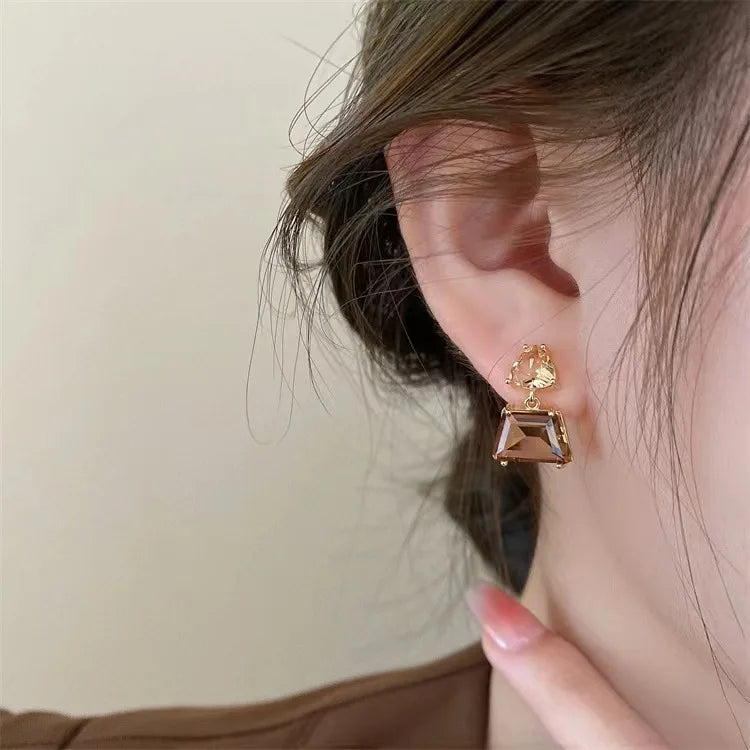 The eye-catching crystal adds a shimmering touch, making these earrings a standout accessory. Whether it's a casual day out or a formal event, these earrings are versatile enough to complement any setting. Despite their simplicity, these earrings exude chicness, making them a must-have for fashion enthusiasts. These dangle earrings boast a sophisticated design, perfect for adding a touch of elegance to any outfit.