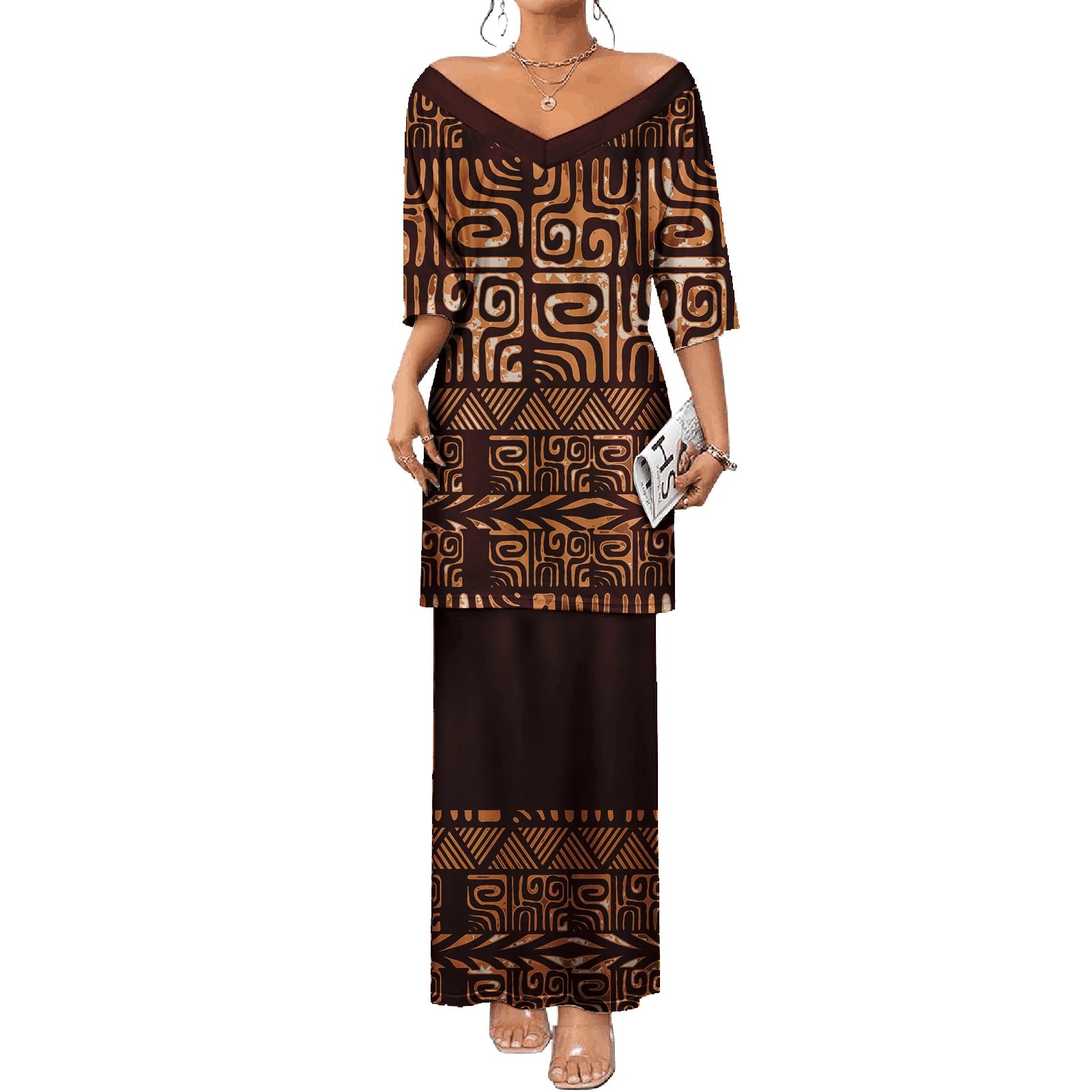 The Totoka Pule Taha Dress brings timeless island elegance to life. Designed in the traditional pule taha style, it drapes gracefully over one shoulder, creating a striking yet effortless look. The long flowing silhouette flatters every figure, while bold Polynesian prints carry the beauty and storytelling of heritage. Perfect for weddings, cultural events, or making a statement at special occasions, the Totoka is a dress that embodies both tradition and modern sophistication.